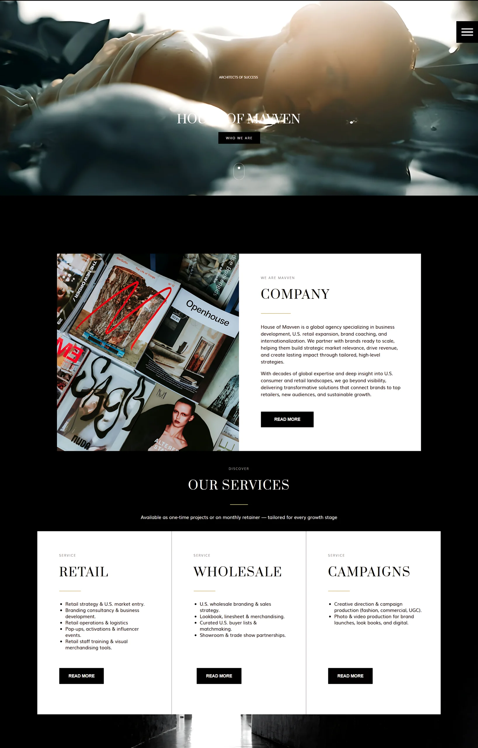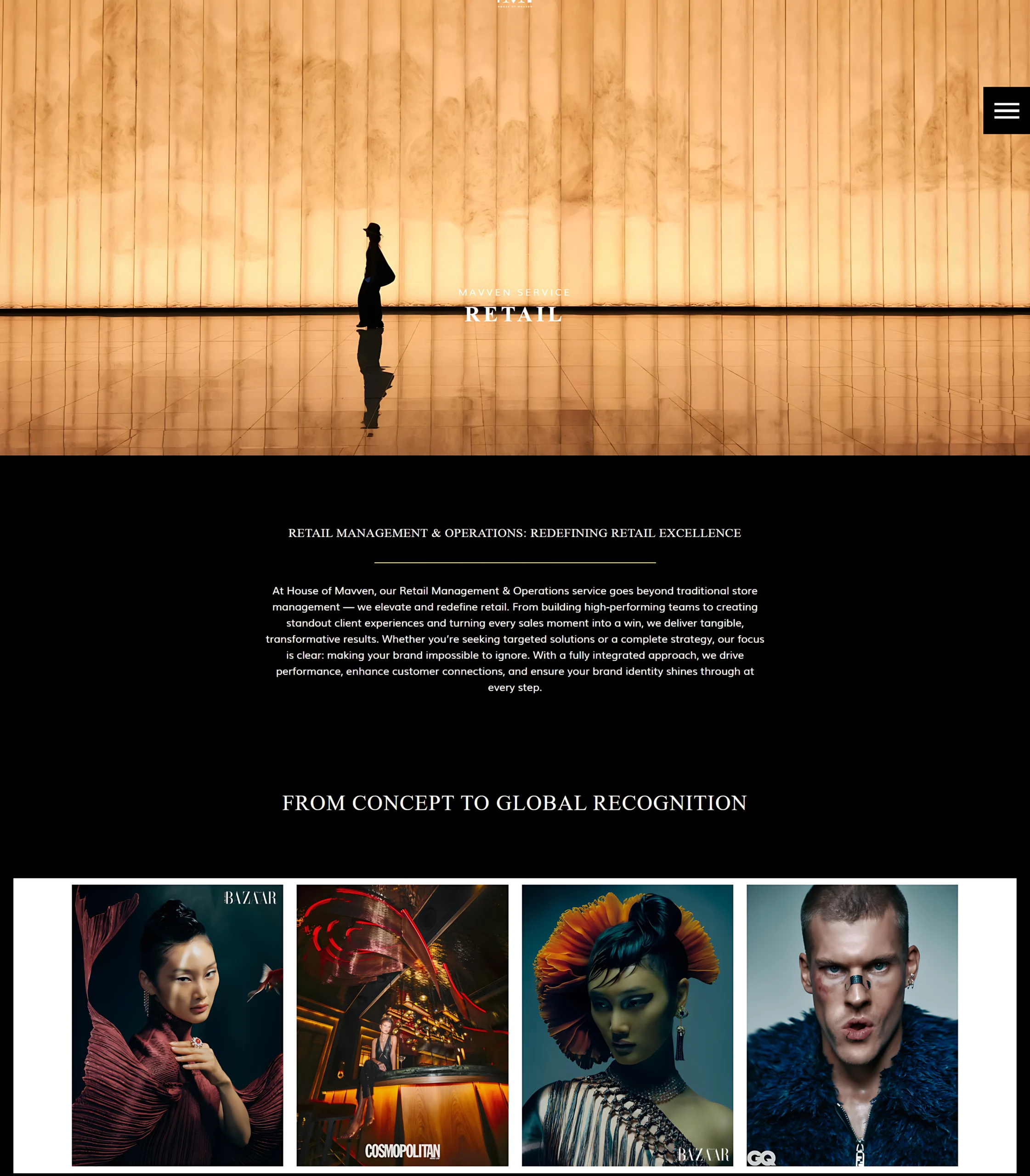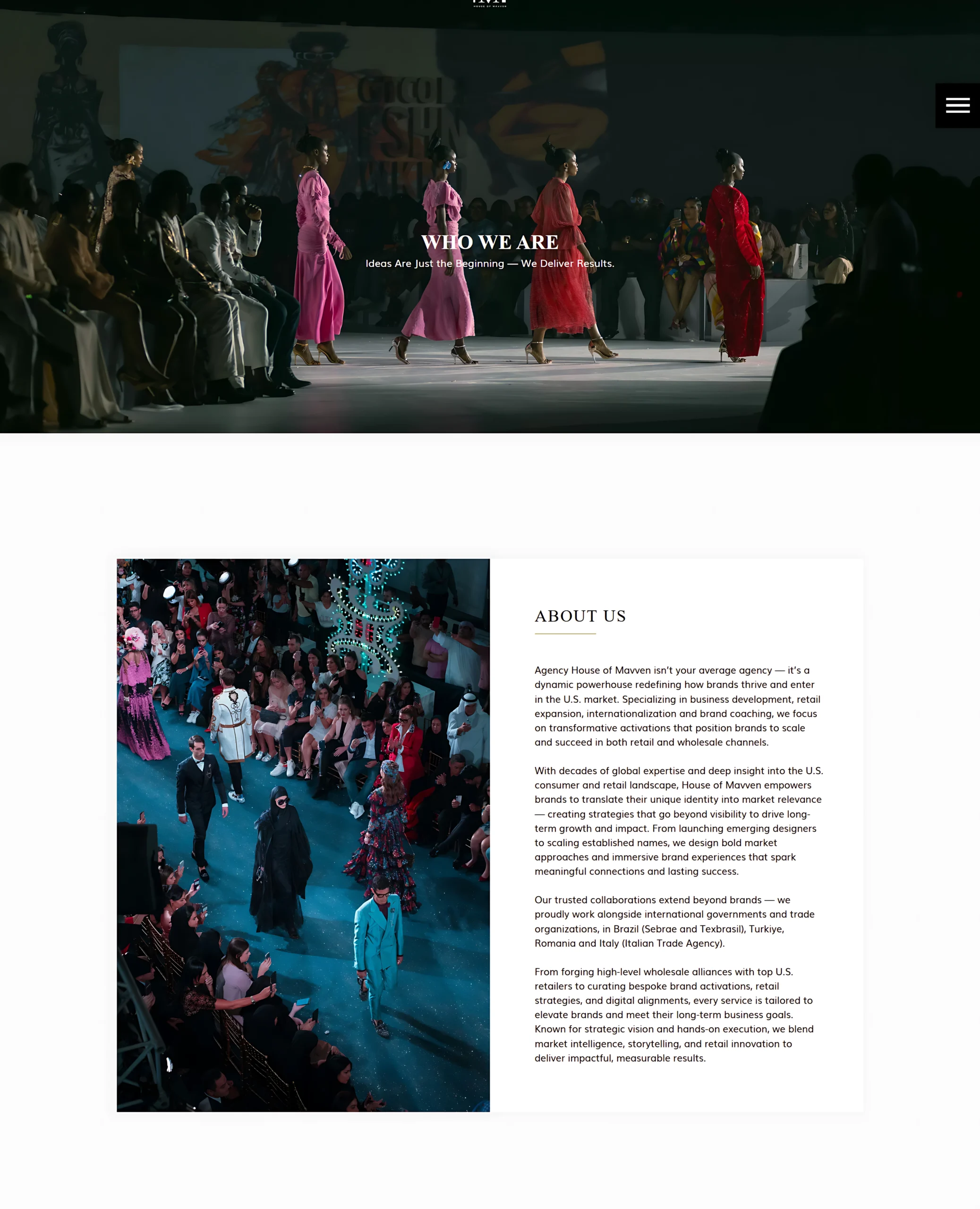 Craft a modern, editorial-style website that reflects House of Mavven’s authority in the fashion and retail consulting space.