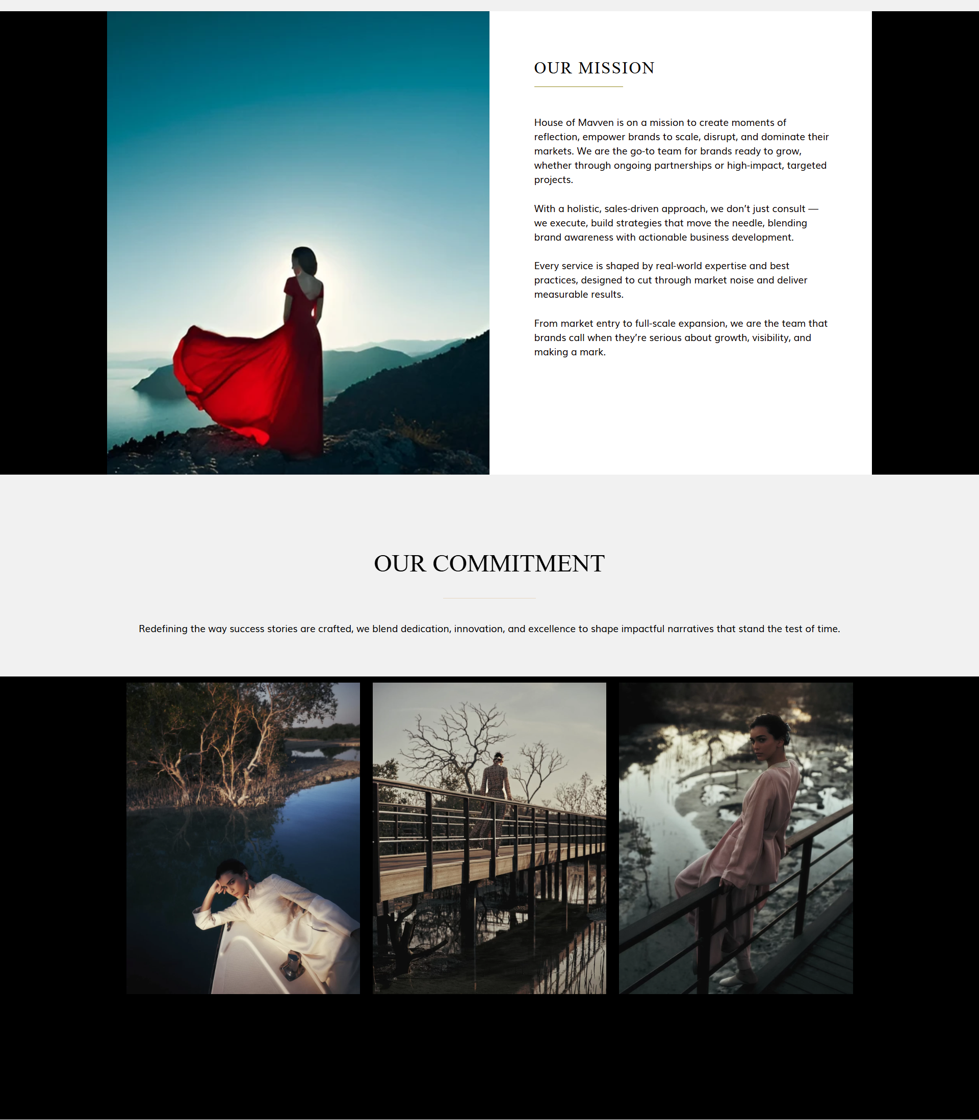 With House of Mavven, that belief was front and center. The website wasn’t just built to be “live” — it was built to elevate. From the way services are structured to how visuals flow through the page, our mission was to create a platform that empowers the brand’s voice and opens doors for global opportunity.