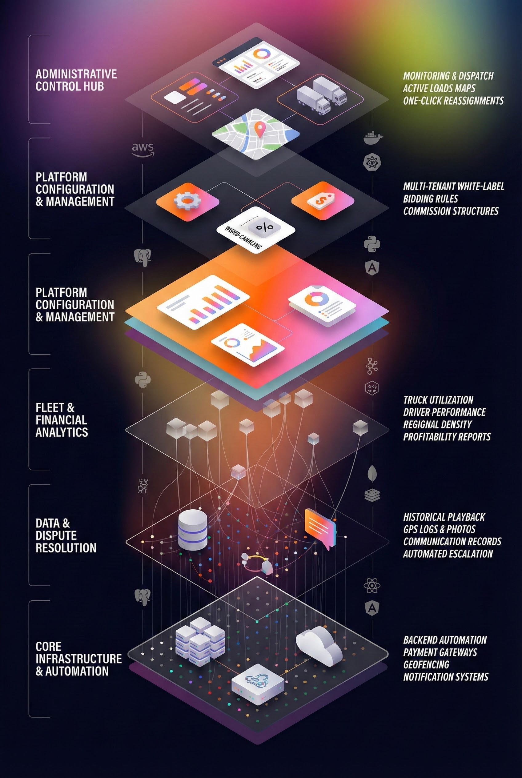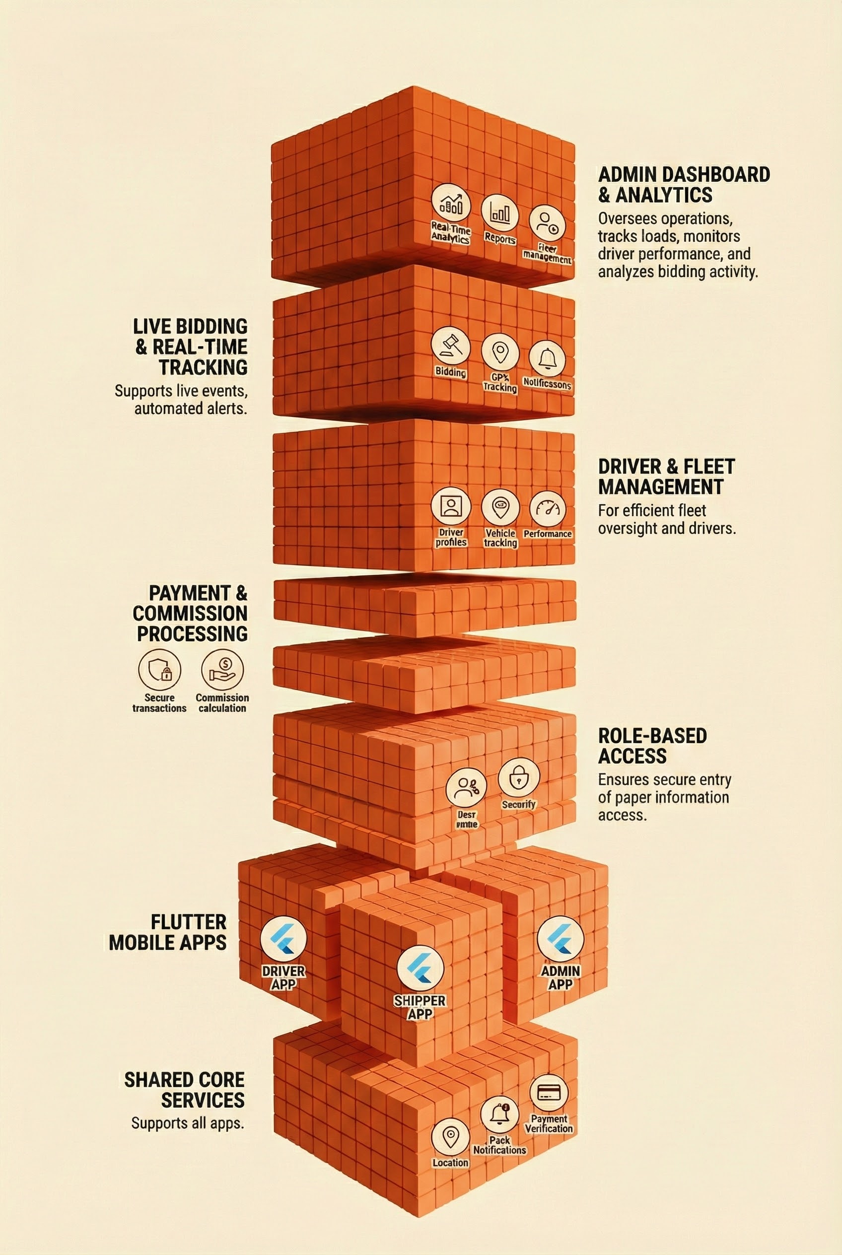 We structured the platform for clarity and speed, ensuring each action—from bidding to delivery tracking—was intuitive and meaningful. This deliberate approach allowed us to create a system that not only performs flawlessly but adapts and scales with the demands of modern logistics.