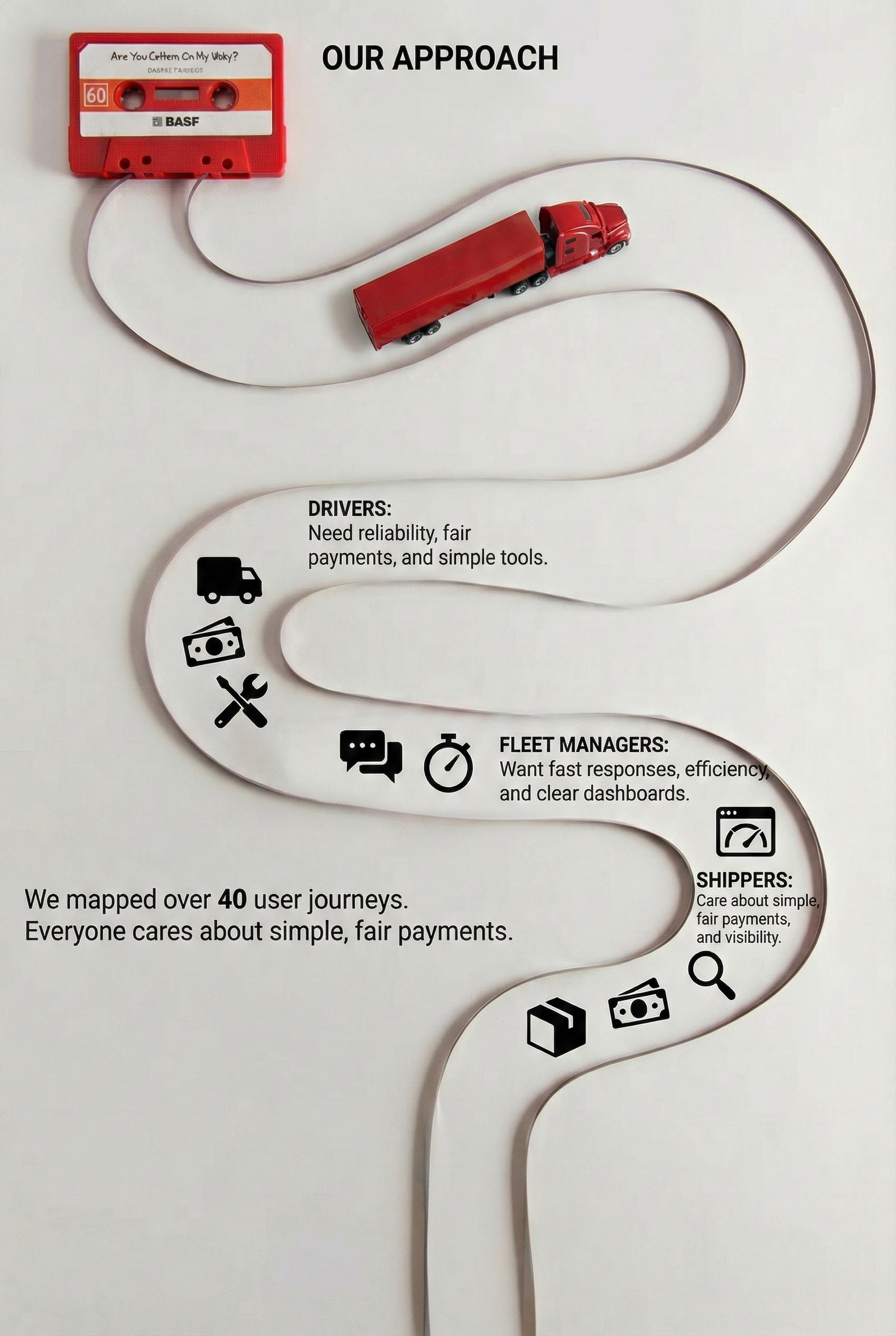 We mapped over 40 user journeys across drivers, fleet managers, and shippers.